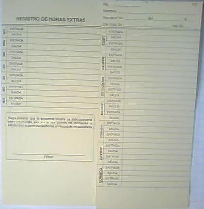 TARJETAS SEMANALES DERECHAS PARA RELOJ DE CHAROLA O SIDE PRINTER.
